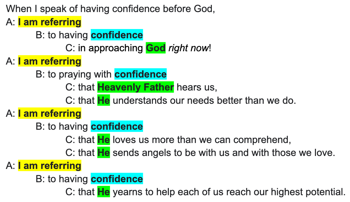 President Russell M. Nelson passed away on September 27, 2025, after serving as the president of The Church of Jesus Christ of Latter-day Saints since January 14, 2018. His final General Conference talk — “Confidence in the Presence of God” — was delivered on April 6, 2025. This talk includes two parallelisms.